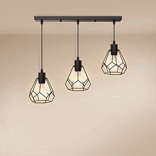 QHQQXN Vintage Industrial Pendant Lamp 3 Lights Cage Rustic Chandelier Black Farmhouse Ceiling Hanging Fixture Kitchen Island Foyer Entryway Suspension Light
