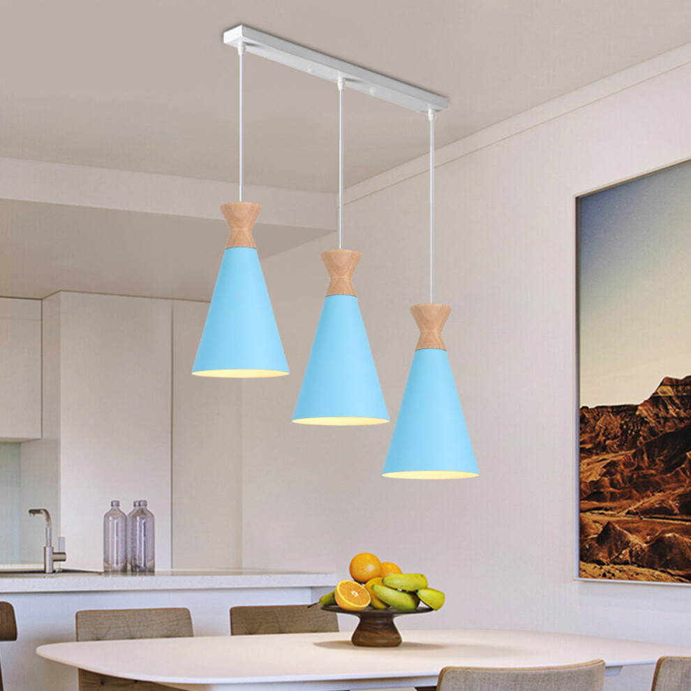 (B) Industrial Pendant Lamp 3 Lights Nordic Design Ceiling Lamp Blue Retro Modern Pendant Light for Dining Room, Kitchen, Bedroom, Office, E27-B