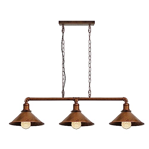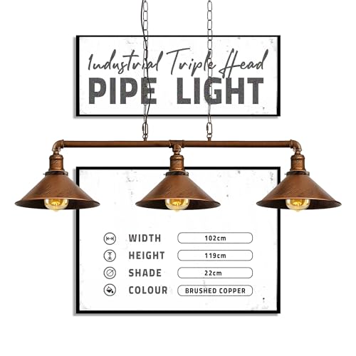 DC VOLTAGE Industrial Suspended Ceiling Pendant 3 Lamp Brushed Copper Metal Water Pipe Vintage 22cm Shade with Hanging Chain Light Fitting for Kitchen Living Room Home Decor & Improvement Essential