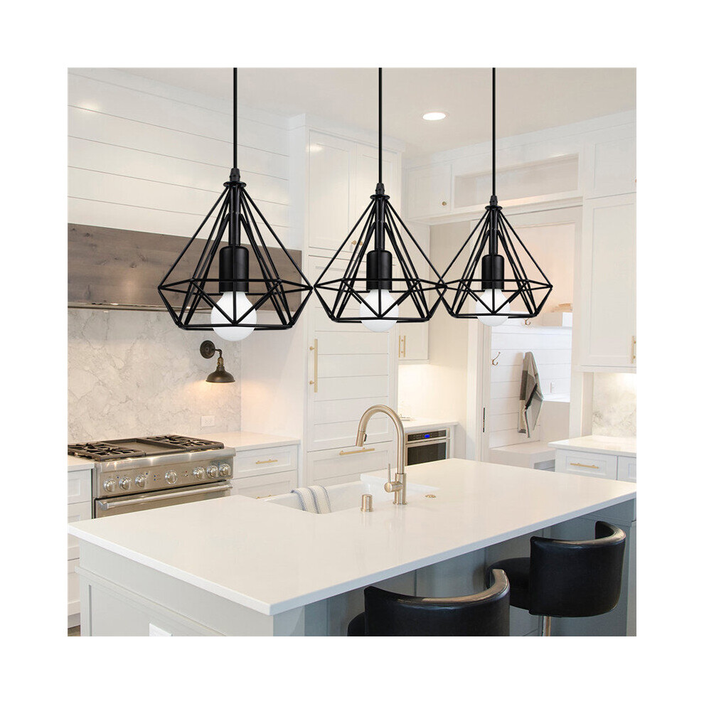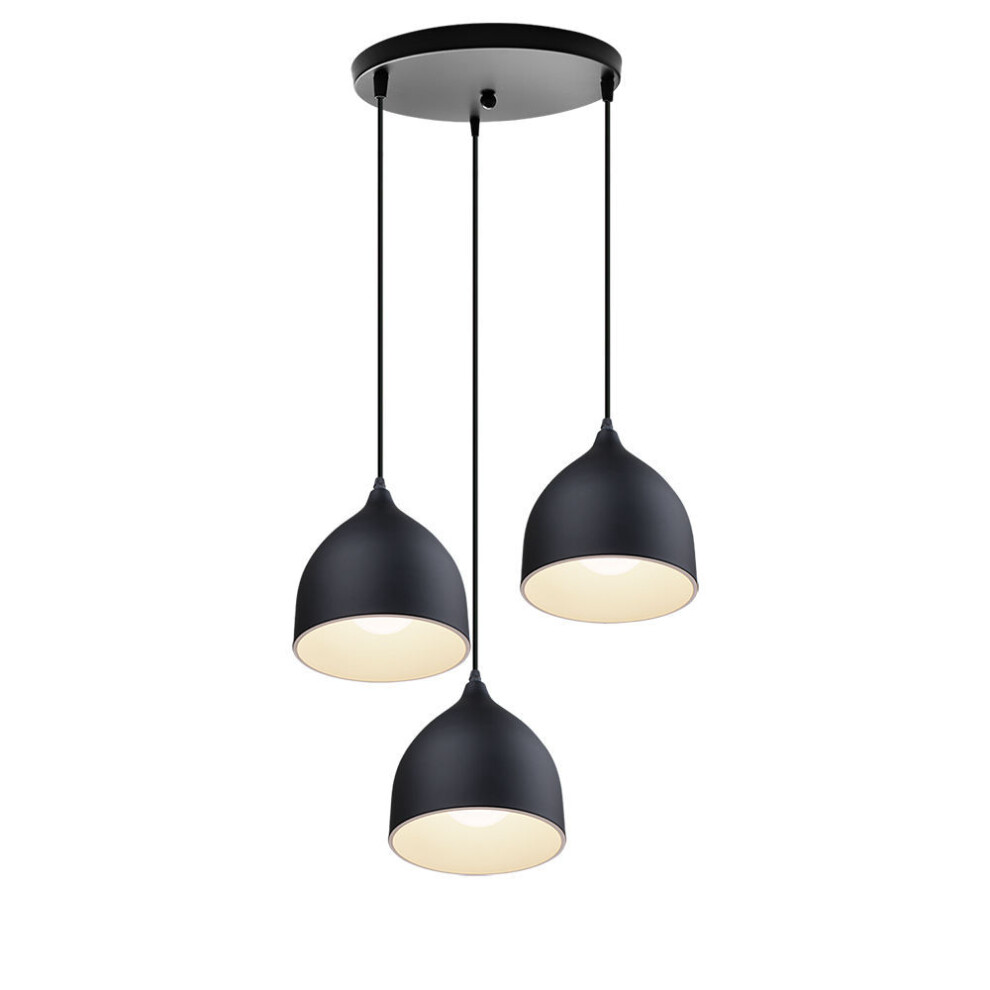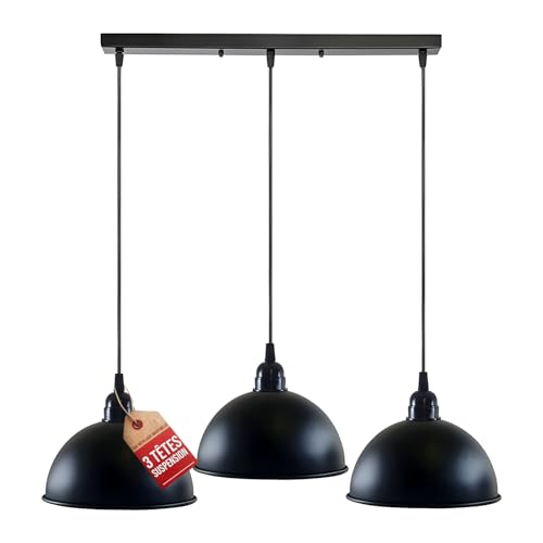 LEDSone Pendant Lamp Shade 3 Head Black E27 Bulb Base Vintage Industrial Dome Shape Ceiling Hanging Light Loft Style Metal Ceiling for Kitchen Island Living Room Dining Room E27 UK Holder Kit.