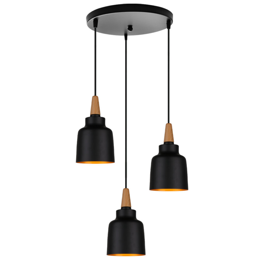 Modern E27 Ceiling Light Vintage Creative Pendant Lamp Retro 3 Heads Antique Pendant Light for Cafe Bar Barn Black