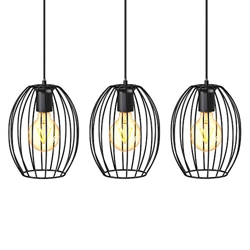 EMKE Industrial Ceiling Light Fixture, Black Vintage Pendant Lamp, 3 Lights for Hallway, Living Room and Restaurant