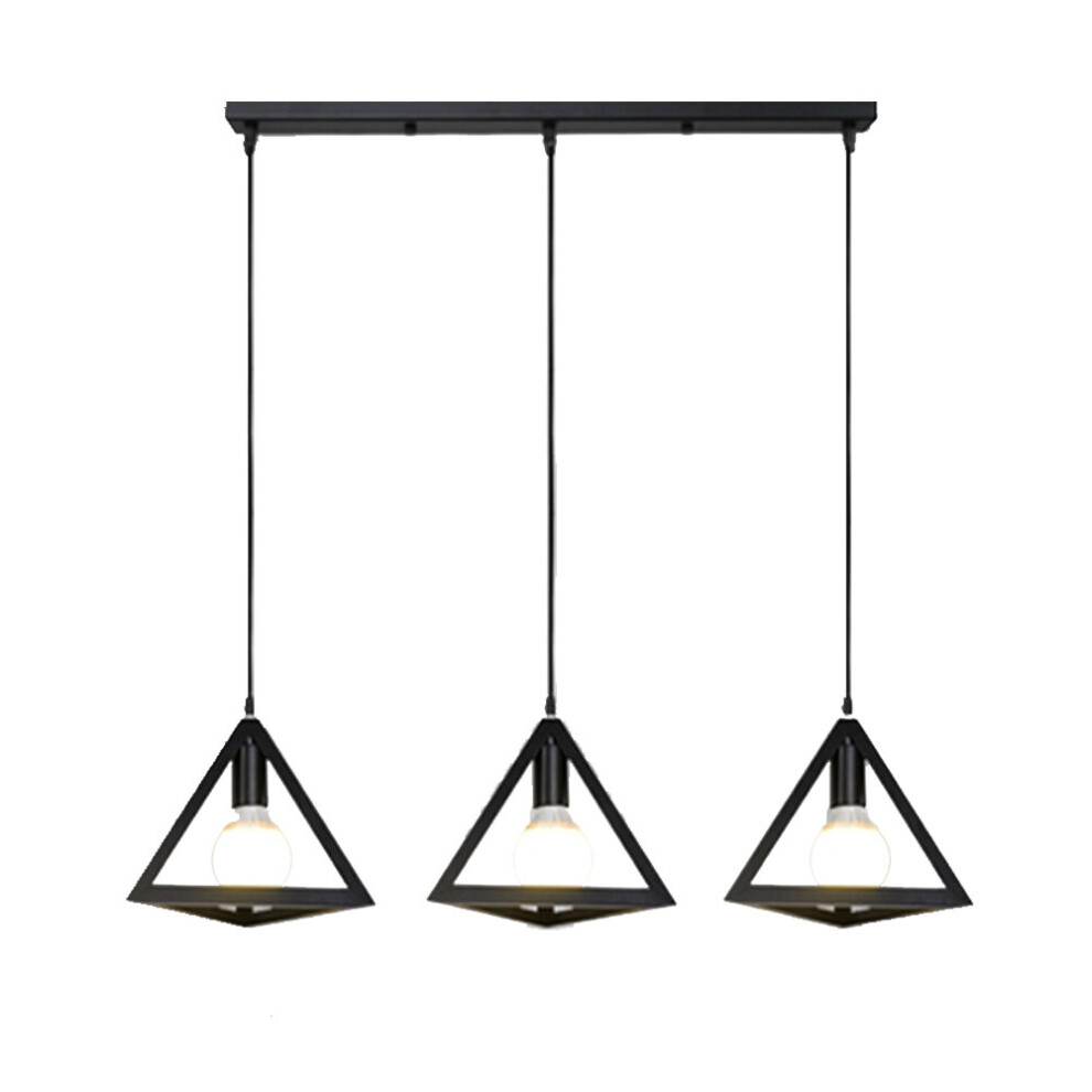 Pendant Lamp Industrial Chandelier 3-Light Adjustable Triangle Vintage Hanging Light for Kitchen Cafe Hallway Black