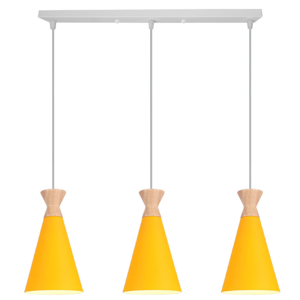 (B) Industrial Pendant Lamp 3 Lights Nordic Design Ceiling Lamp Yellow Retro Modern Pendant Light for Dining Room, Kitchen, Bedroom, Office, E27-B