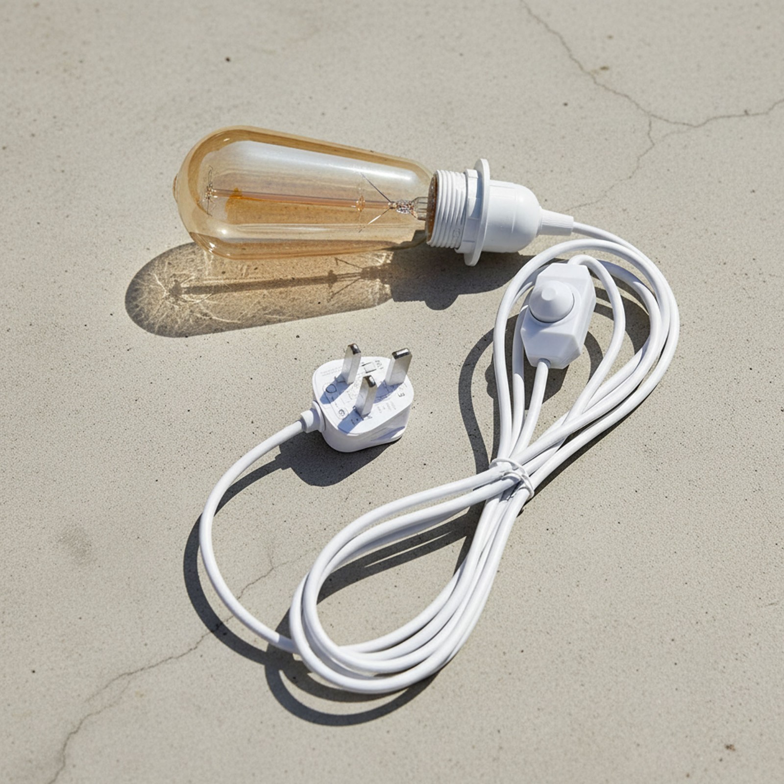 PVC Flex Cable kit Plug In Pendant Lamp Light Set 4m E27 Fitting With Switch UK