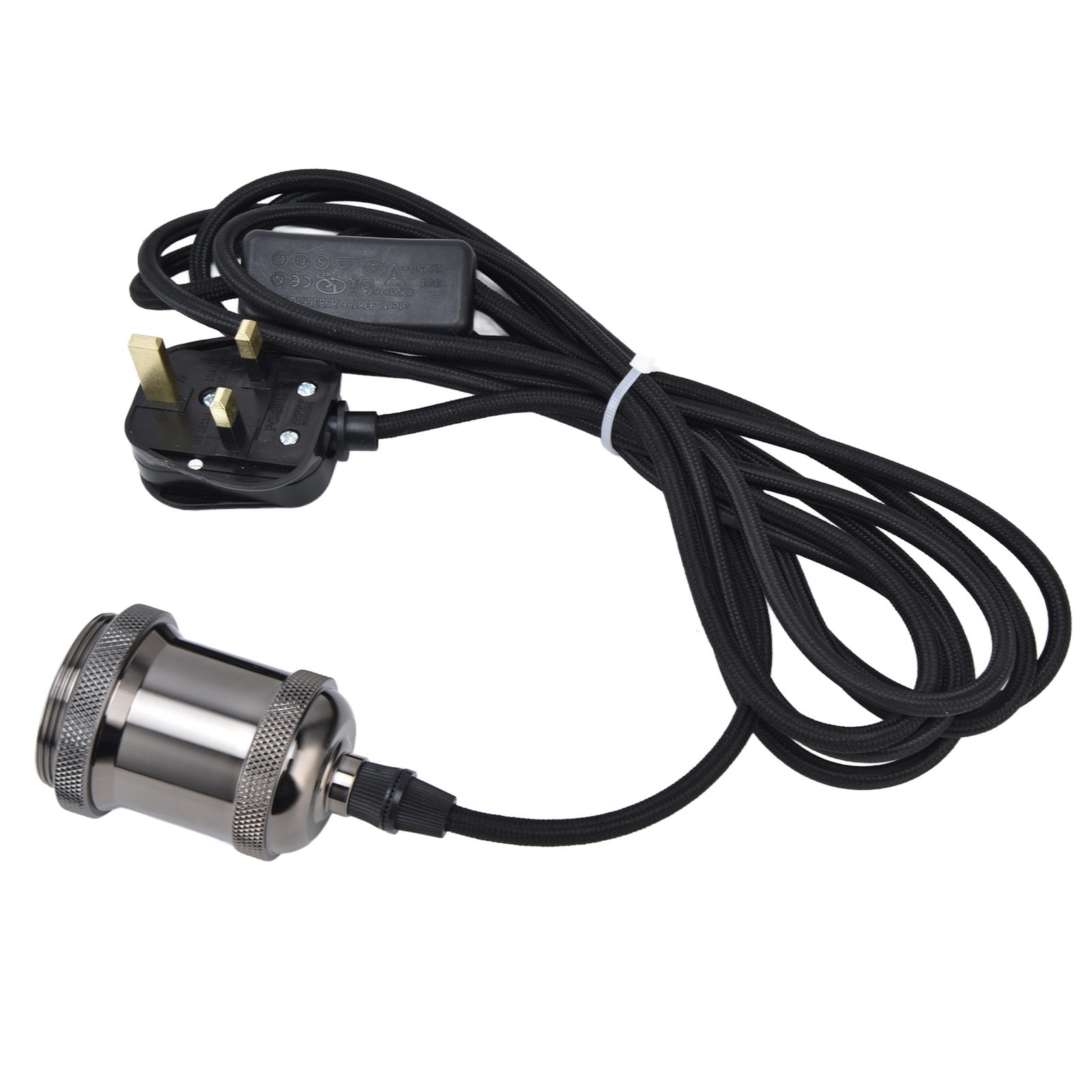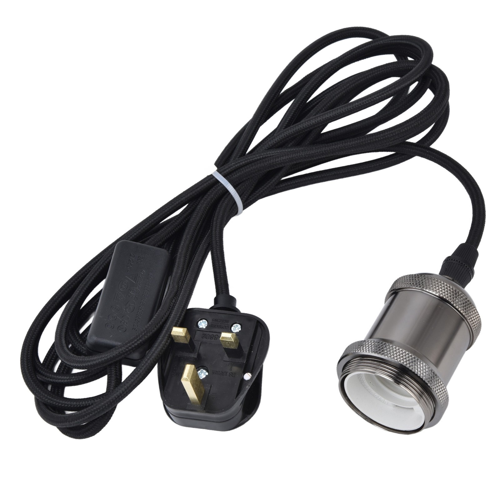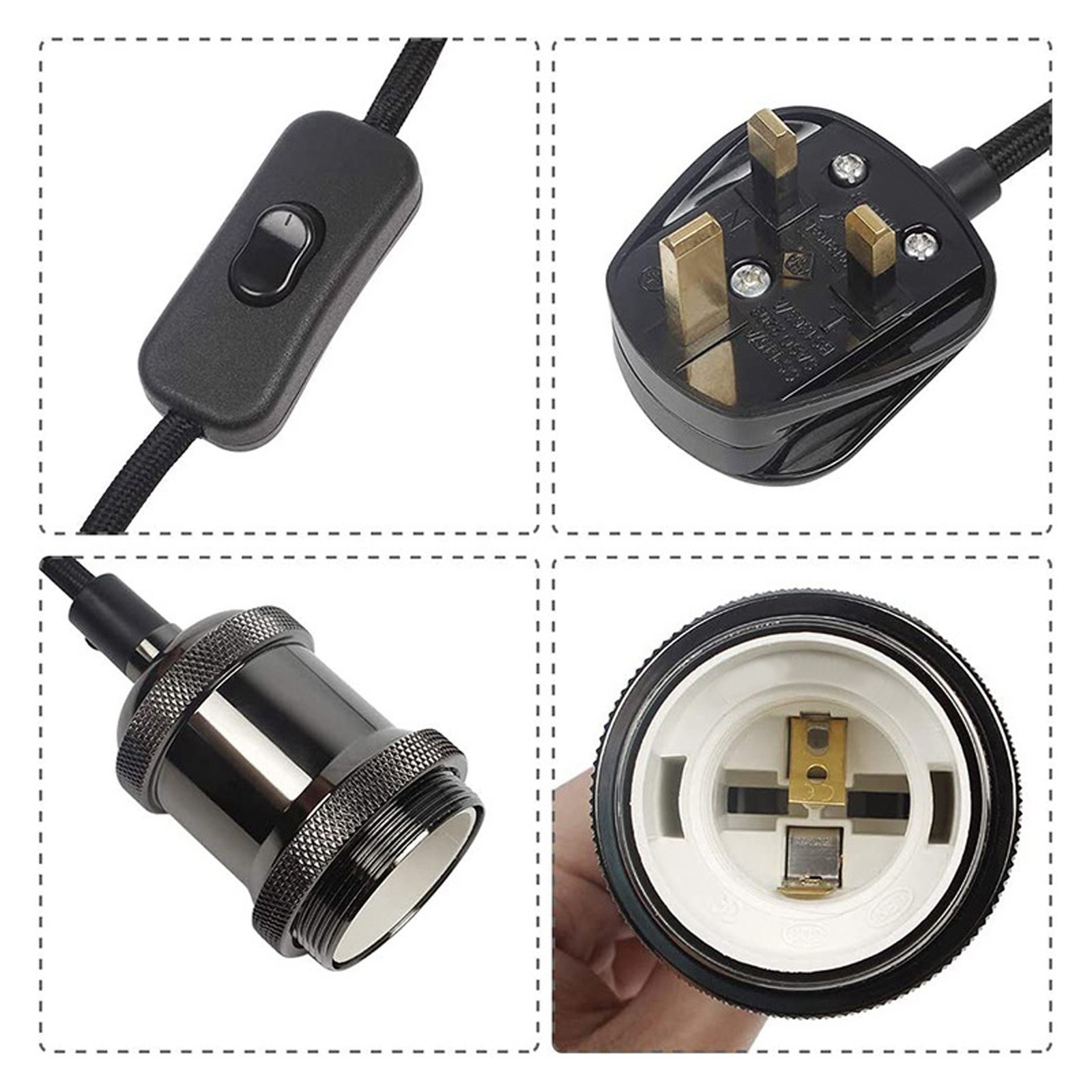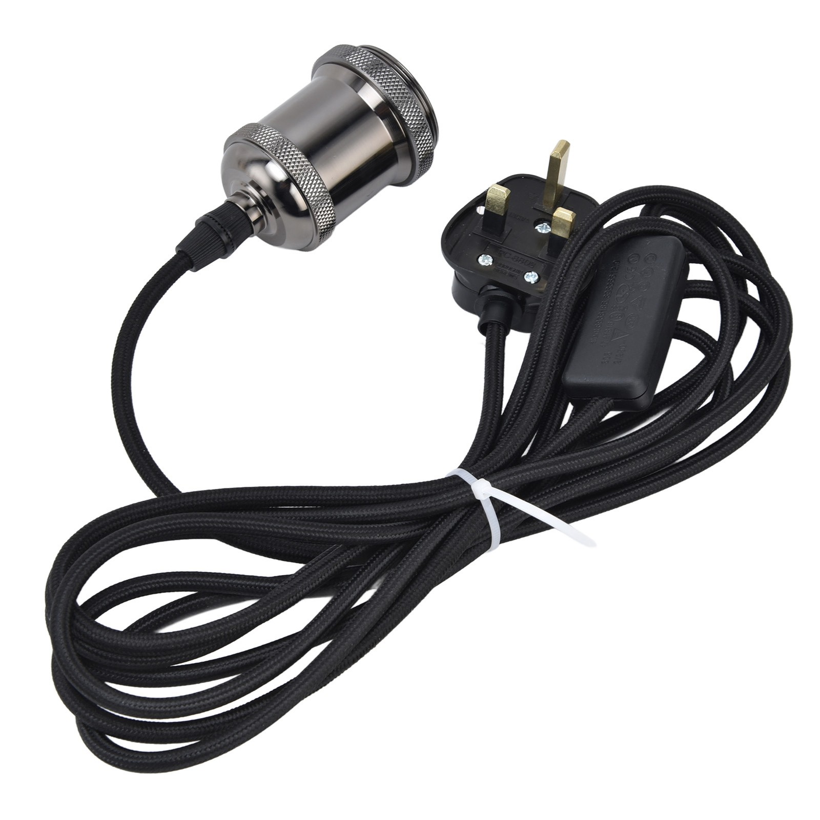 Black E27 Lamp Holder Hanging Light Cord With On Off Switch Pendant Lampholder