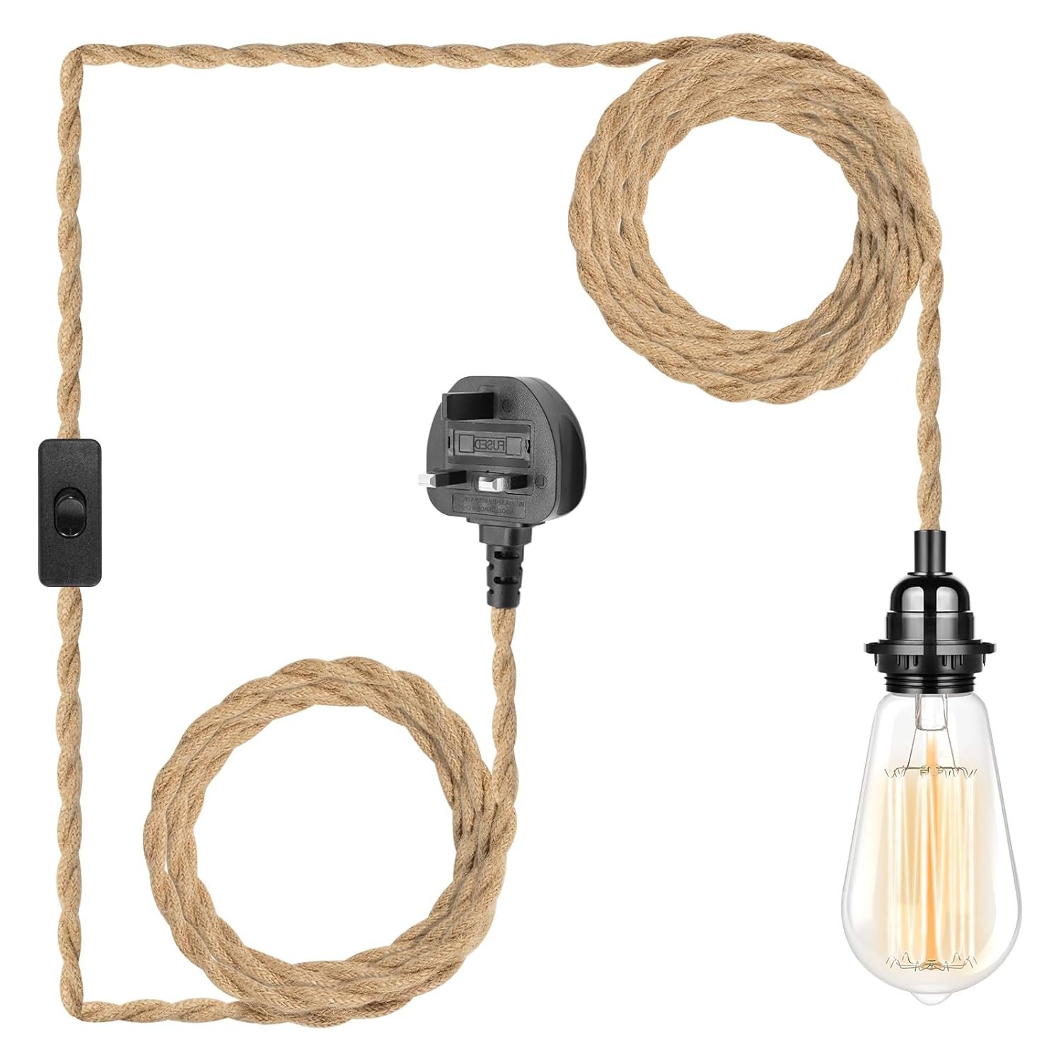 LEDSone Industrial Hanging Pendant Light with Plug-in, E27 Suspended Lamp Holder, 4m Fabric Flexible Cable with Dimmer Switch for Ceiling Hanging Lights (Black)