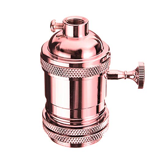 LEDSone Retro Lamp Bulb Holder E27, Vintage Bulb Socket Edison Lamp Holder E26/E27 with On/Off Switch Light Fitting Parts, Light Socket for DIY Pendant Light, Wall Light – Rose Gold