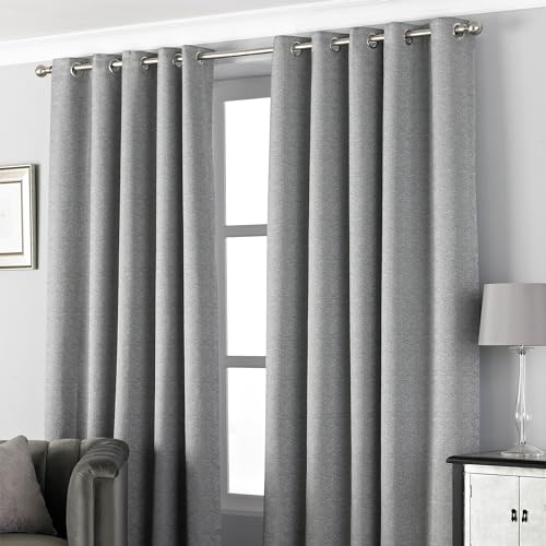 Riva Paoletti Pendleton Ringtop Eyelet Curtains (Pair) - Graphite Dark Grey - Modern Micro Dot Design - Ready Made - Room Darkening - 100% Polyester - 168cm width x 137cm drop (66" x 54" inches)