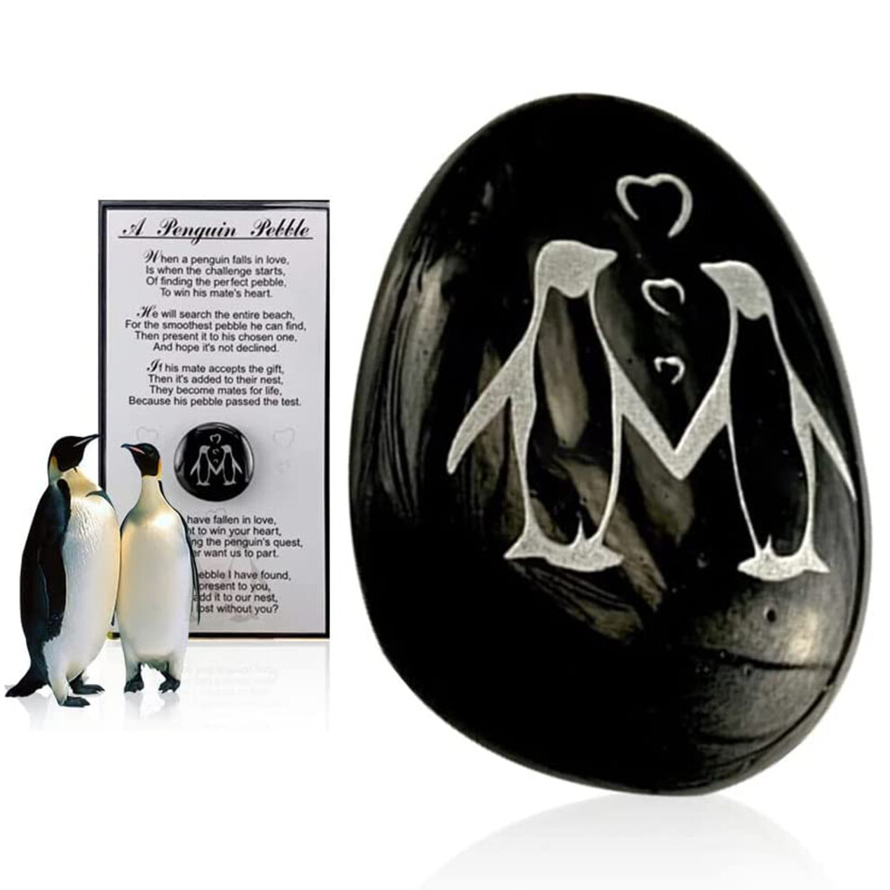 First Anniversary Keepsake, Valentines Anniversary Gift, Romantic Commitment Symbol, Hand Engraved Penguin Pebble, Ideal for Home Office Decoration