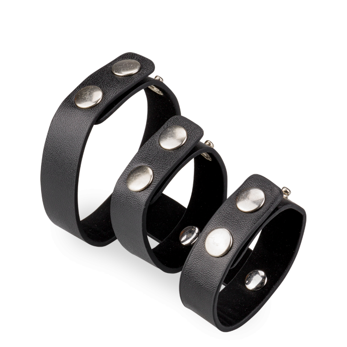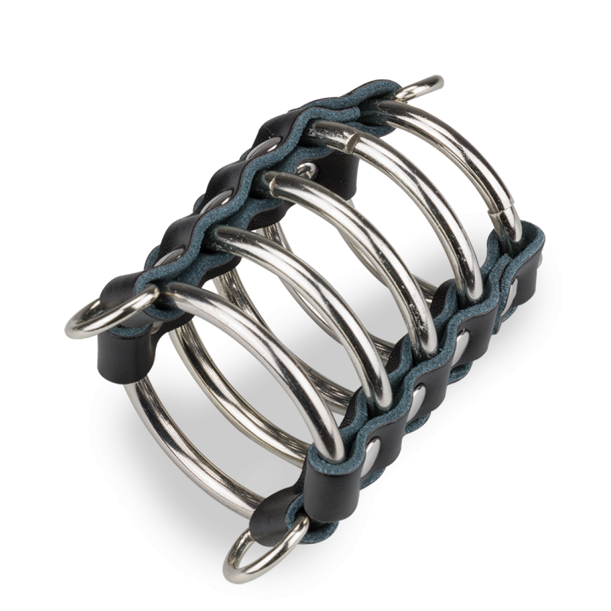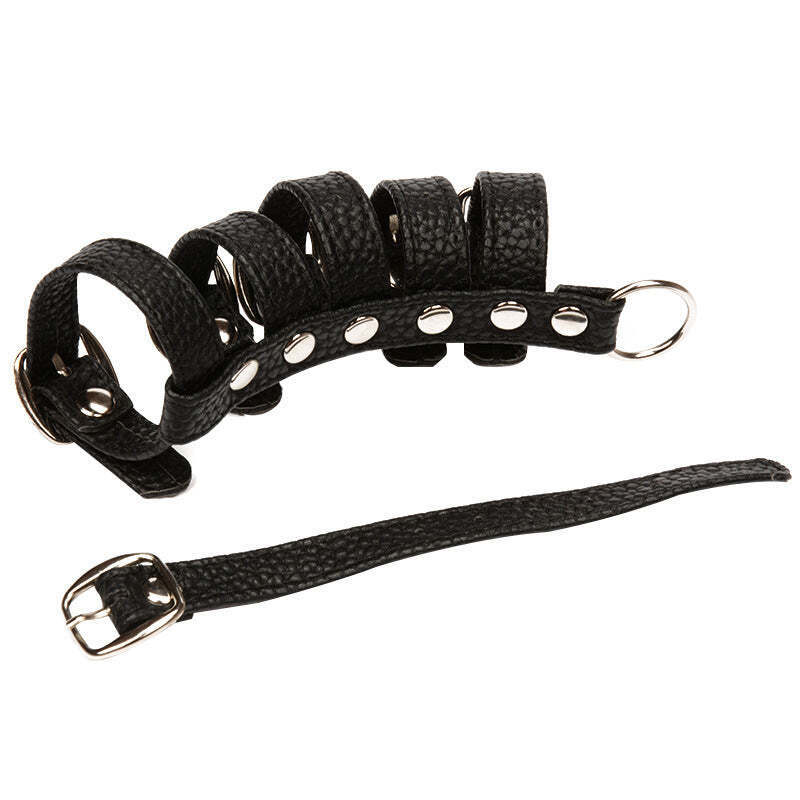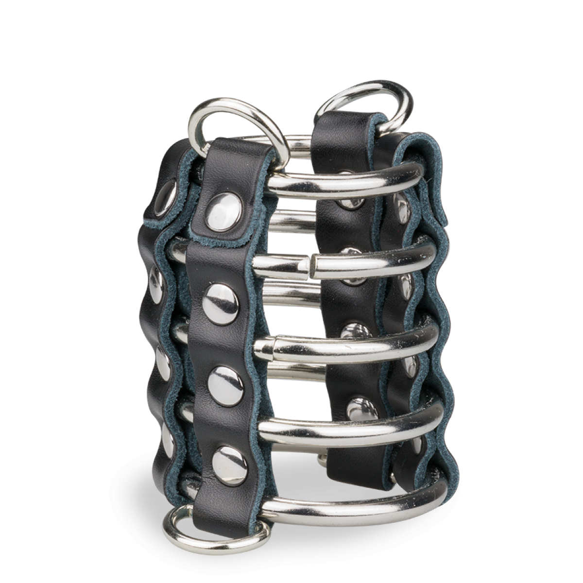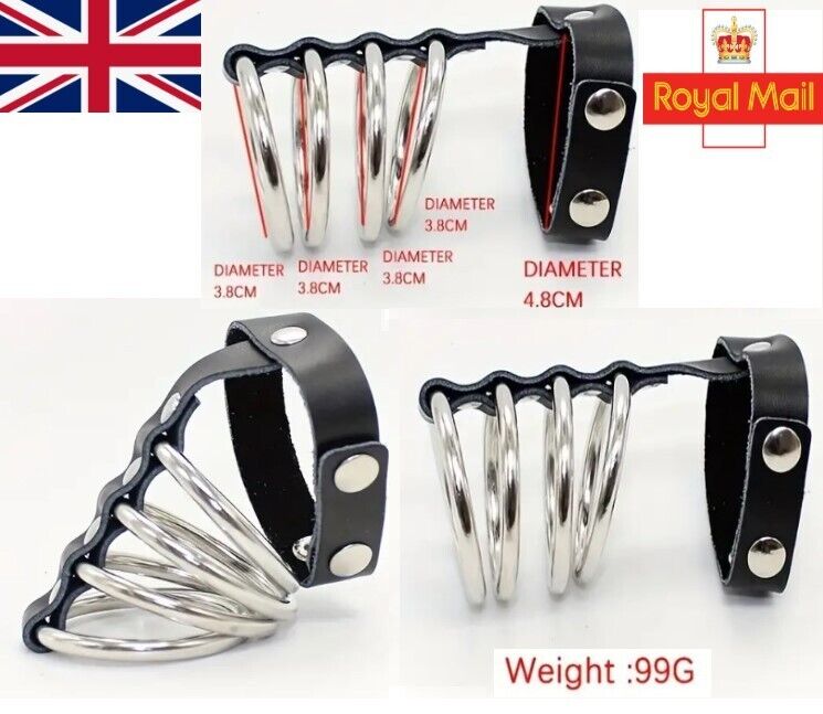 Cock Ring Chastity Cage Gates Hell 4 Metal Penis Rings faux leather Black balls