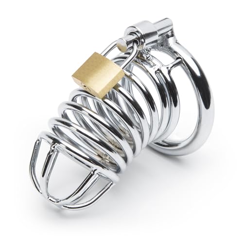 Lovehoney DOMINIX Deluxe Metal Male Chastity Cage 3.5 Inch | Solid Steel Cock Lock Device for Men with Padlock & Keys | Heavy Duty Penis Enclosure | Orgasm Denial, BDSM Fetish Training & Control Play
