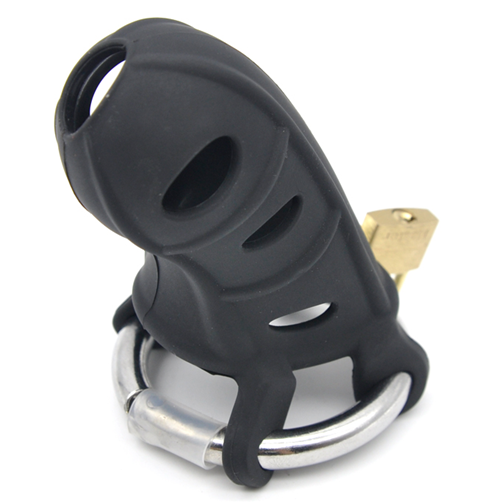 Black Silicone & Stainless Steel Locking Chastity Gage - Male Penis Cock Cage