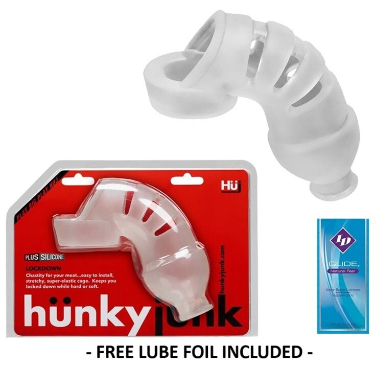 Hunky Junk Lockdwon Chastity Cage 4.5 Inch Stretchy Comfortable Penis Cage LUBE