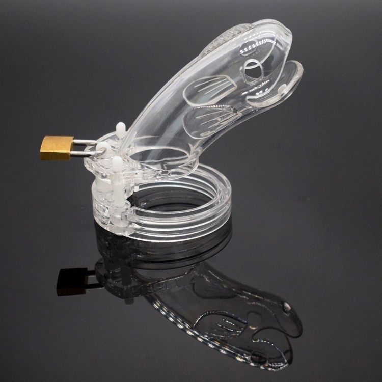 Clear Plastic Cock Chastity Cage - Clear Fish Penis Cage Locking Male Sex Toy
