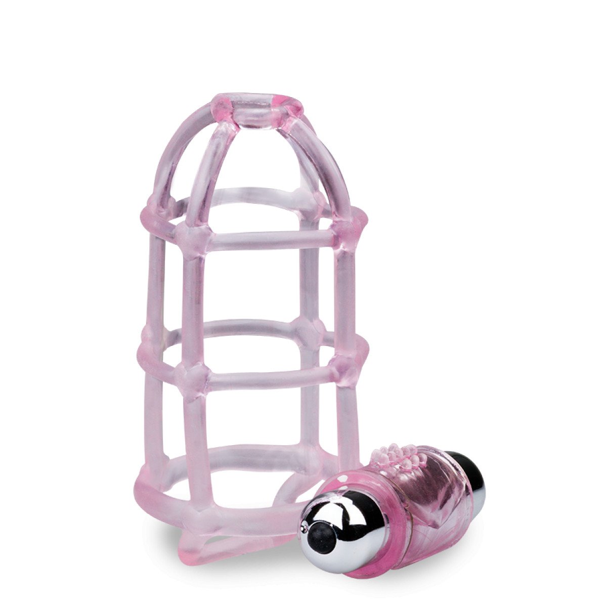 Pink Plastic Male Chastity Cage Kit with 4 Rings Lightweight Plastic Penis Cage