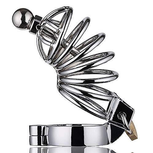 (Ring 50mm) Smaker Handwork Stainless Steel Chastity Lock Penis Cage with Silicone Tube and Clamp Ring for Male Primary Metal Bondage