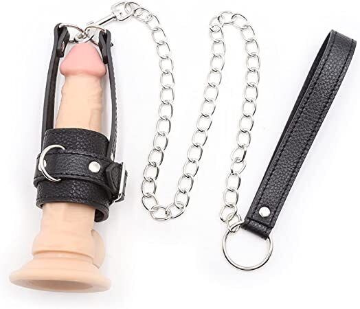 PU Leather Penis Cage with a Chain and Lead - Penis Lead - Fetish Sex Toys