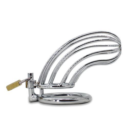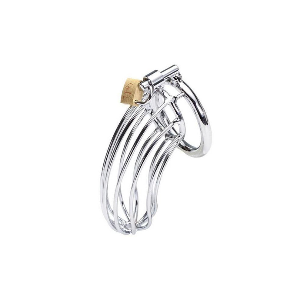 Stainless Steel Chastity Male Cock Cage - Metal Locking Penis Cage & Ball Ring