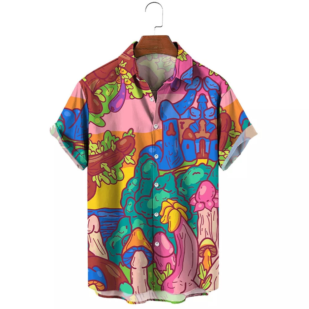 (A, XL) Mens Funny Penis Printed Shirts Casual Hawaiian Buttons Down Short Sleeve Tops