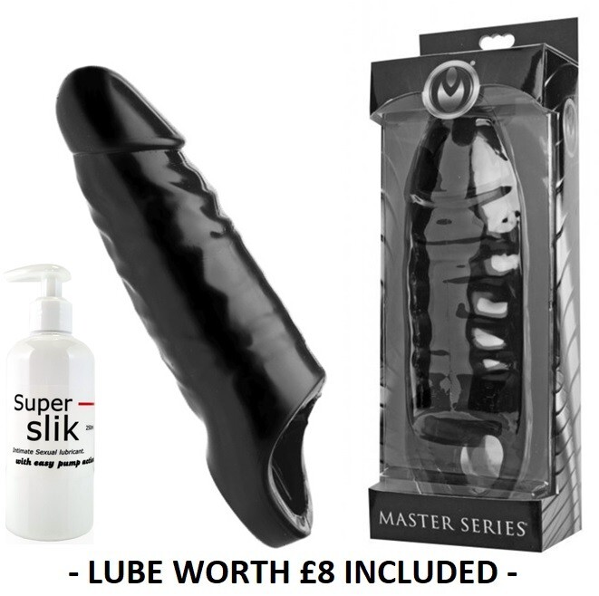 Penis Sleeve MAMBA XL 9.5 Inches REALISTIC BLACK Extender 2.5 INCHES WIDE + LUBE