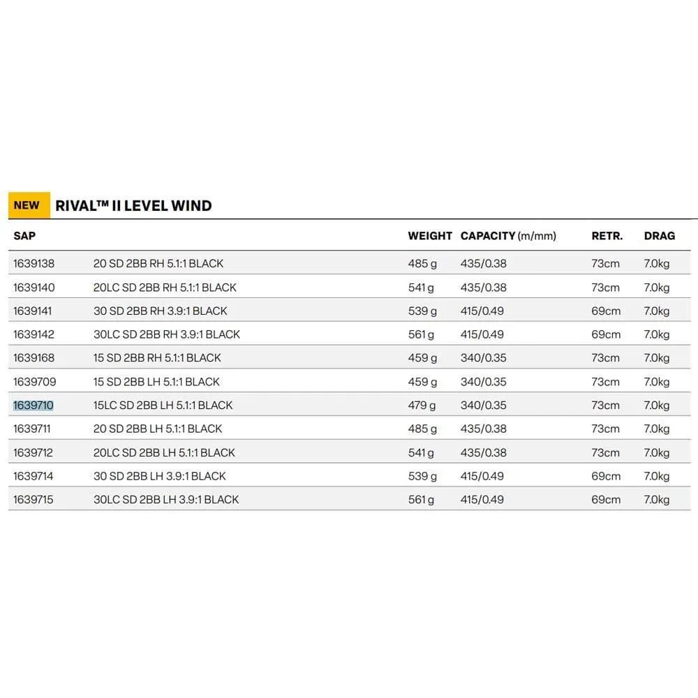 PENN Rival™ II Level Wind Reel | Saltwater All-Round Fishing Reel | Graphite Frame & Sideplates | HT-100 Carbon Drag | Line Capacity Rings | 5.1:1 Gear Ratio | 1500 | Left Hand