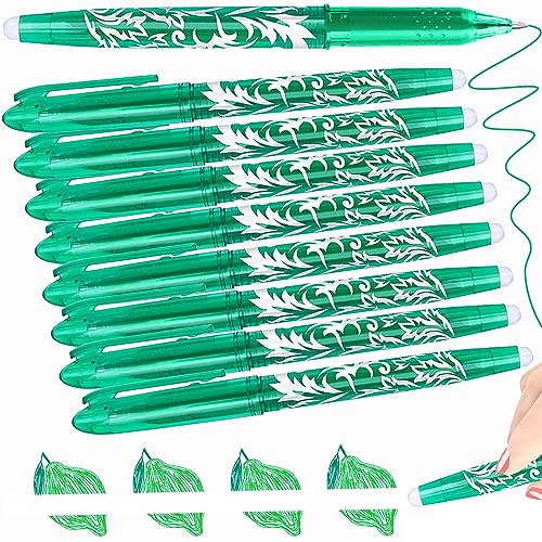 Artbiu 8 Erasable Pens Green Pens, Rub Out Green Ink Eraser Pen, Erasable Gel Pen with Rubbers on the End, 0.5mm Rubber Biro for office Supplies Writing