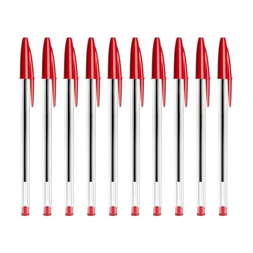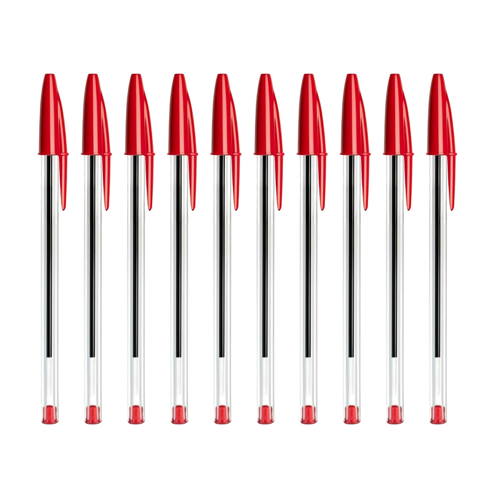 SOMCO - Pack Of 10 Red Biro Ballpoint Pens - Medium Tip - Premium Pen With Ergonomic Design