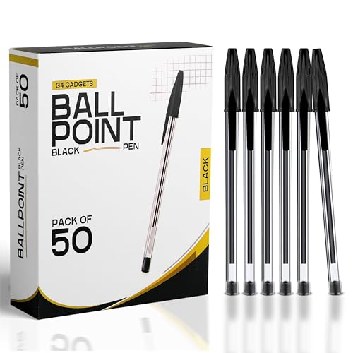 G4GADGET Pack of 50 Black Pens - Medium Tip Fluent Smooth Writing Black Biro Ballpoint Pens