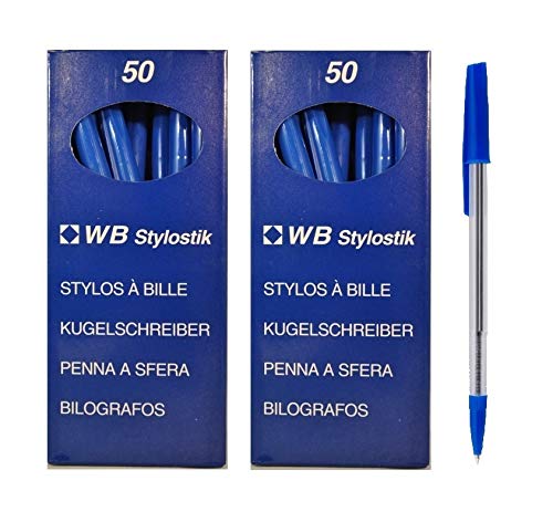 100 BLUE BALLPOINT PENS BIRO Stylostik Brand WITH GRIP 0.7MM LINE