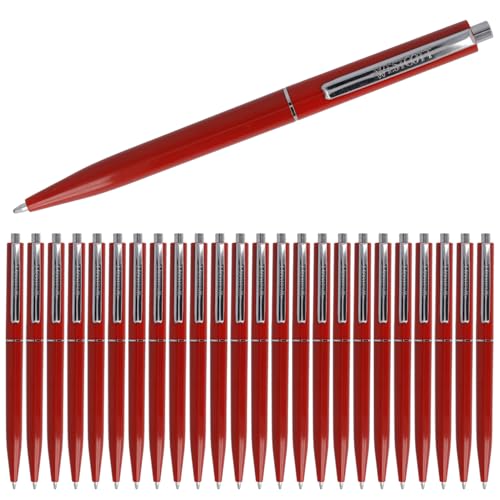 Westcott ballpoint pen ALLTIME red 25 pieces | Retractable biro pens with red ink | Line width M with X20 standard refill | Document-proof ISO 12757-2 | Sturdy metal clip | E-737449 00