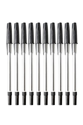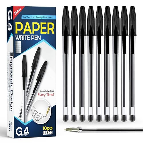 G4GADGET Premium Pack of 10 Black Biro Ballpoint Pens - Medium Tip for Fluent, Smooth Writing - Professional Quality Pens for Home, Office, and School Use - Long-Lasting Ink and Ergonomic Design