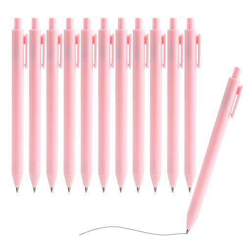 IBEIKE Pink Pens Black Ink, 0.5mm Pastel Gel Ink Ball Point, Cute Pink Biro Pens, Smooth Ballpoint for Writing Taking Notes Home Office (12Pcs)