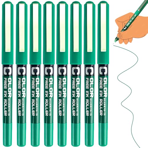 8 Green Pens Rollerball Pens, 0.5mm Ink Pen Gel Pen for Writing, Quick Dry Green Writing Pen for Office, Biro Fine Multipack