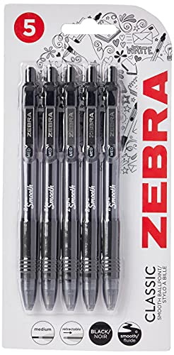 ZEBRA Z GRIP Black Ballpoint Pens, Retractable with smooth ink, comfortable grip and pocket clip reliable biro medium point 50 pack of black