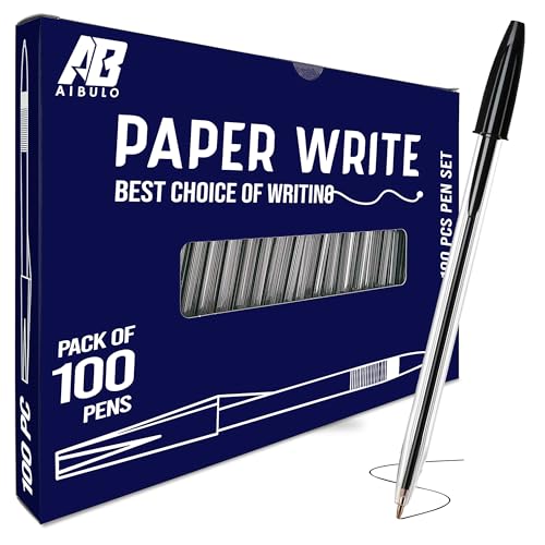 AIBULO Black Biro Ballpoint Pens – Pack of 100 – Smooth & Smudge-Free Writing, Comfortable Grip, Long-Lasting Ink, and Durable Design – Ideal for Bulk Use at School, Office, and Home