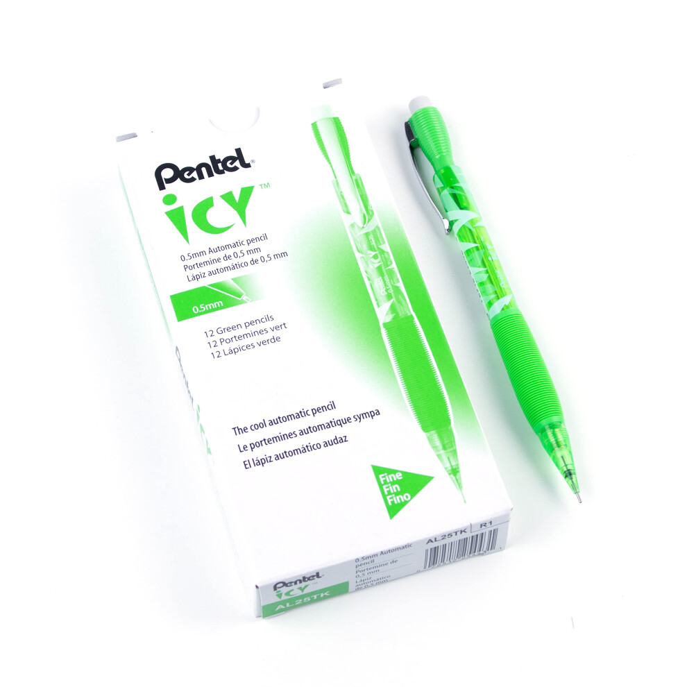 Pentel Icy Mechanical Pencil 0.5mm Tinted Lime Green Barrel Box of 12 AL25TK