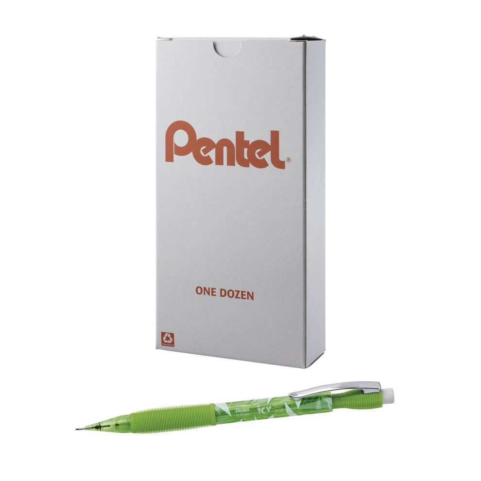 Pentel ICY Mechanical Pencil 0.9mm Tinted Lime Green Barrel 12 pack AL29TK