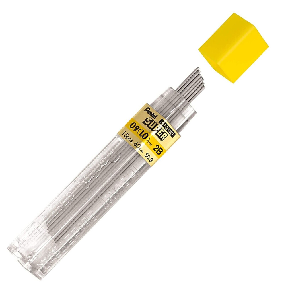 Pentel Super Mechanical Pencil Refill Leads - 0.9mm - 2B - 3 Tubes of 15 Leads