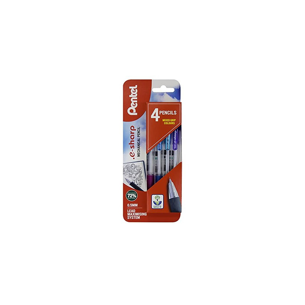 Pentel E-Sharp mechanical pencil, Assorted colours, 1 blister of 4 pencils
