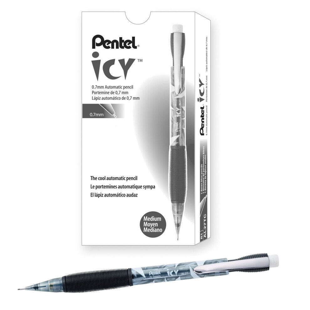 Pentel ICY Mechanical Pencil 0.7mm Tinted Black Barrel 12 pack AL27TA