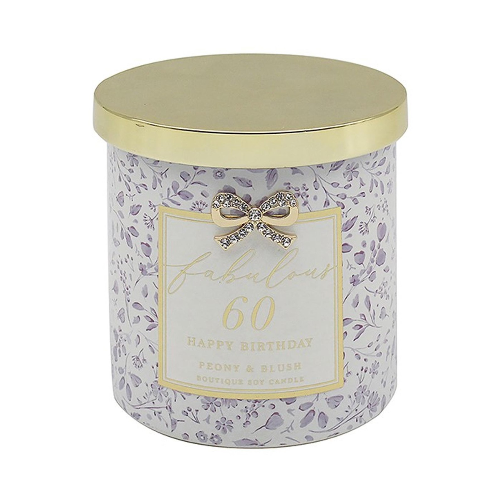 60th Birthday Soy Candle Peony, Blush Suede Scented in Glass Jar Diamante Bow
