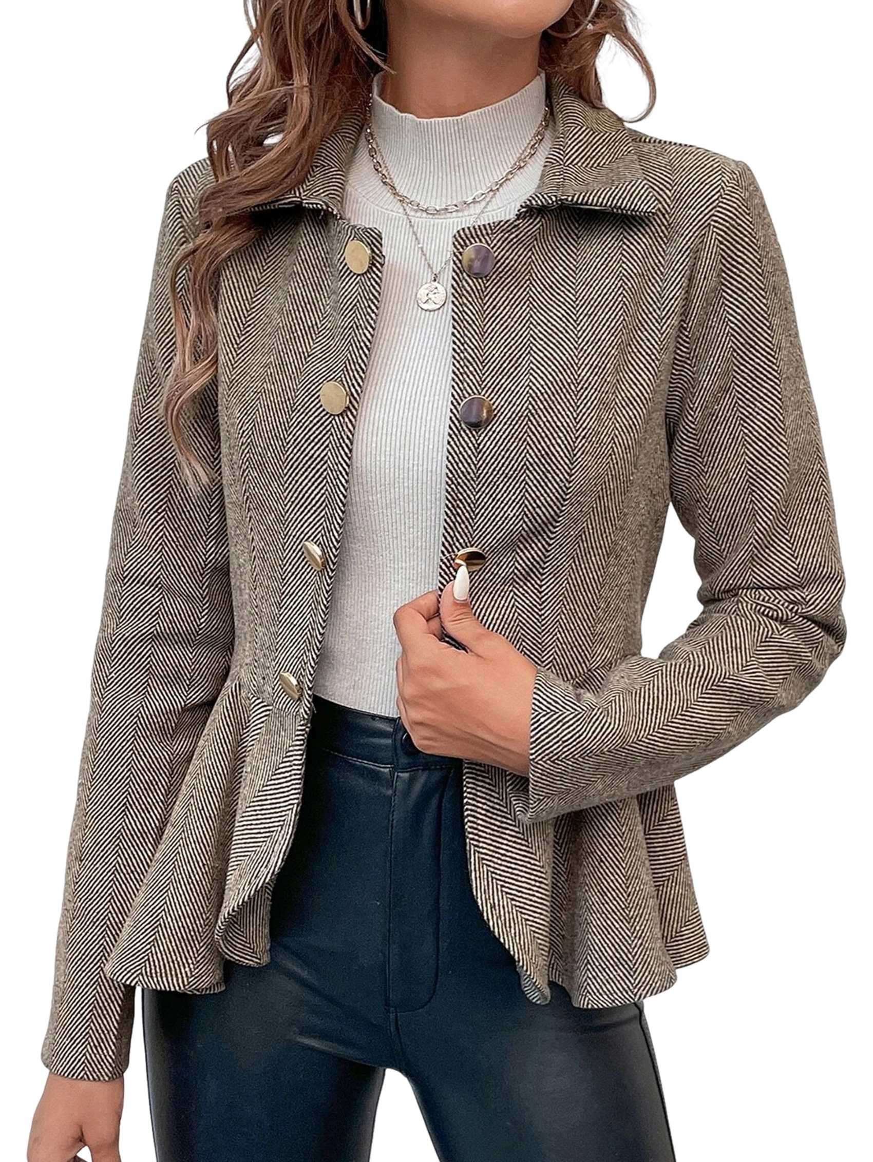 Elegant Women Blazer Business Work Office Peplum Hem Jacket Open Front2057