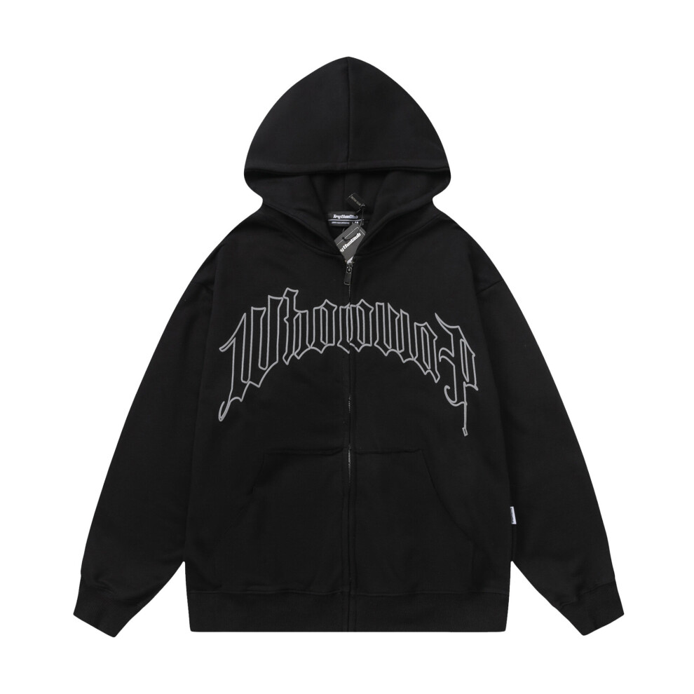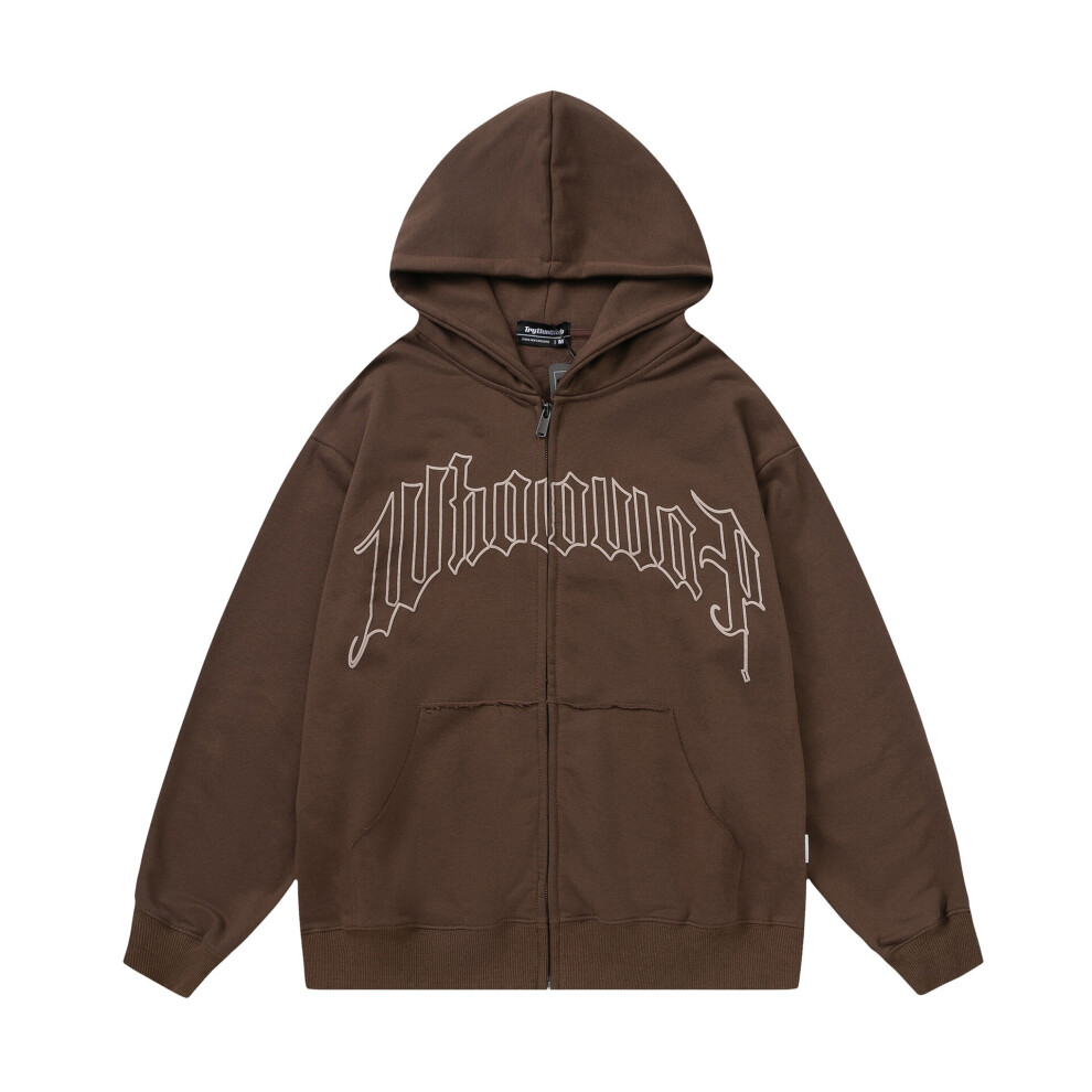 (M) Street Hooded Sweatshirt Top Letter Print Peplum Cardigan Ins Jacket, Brown