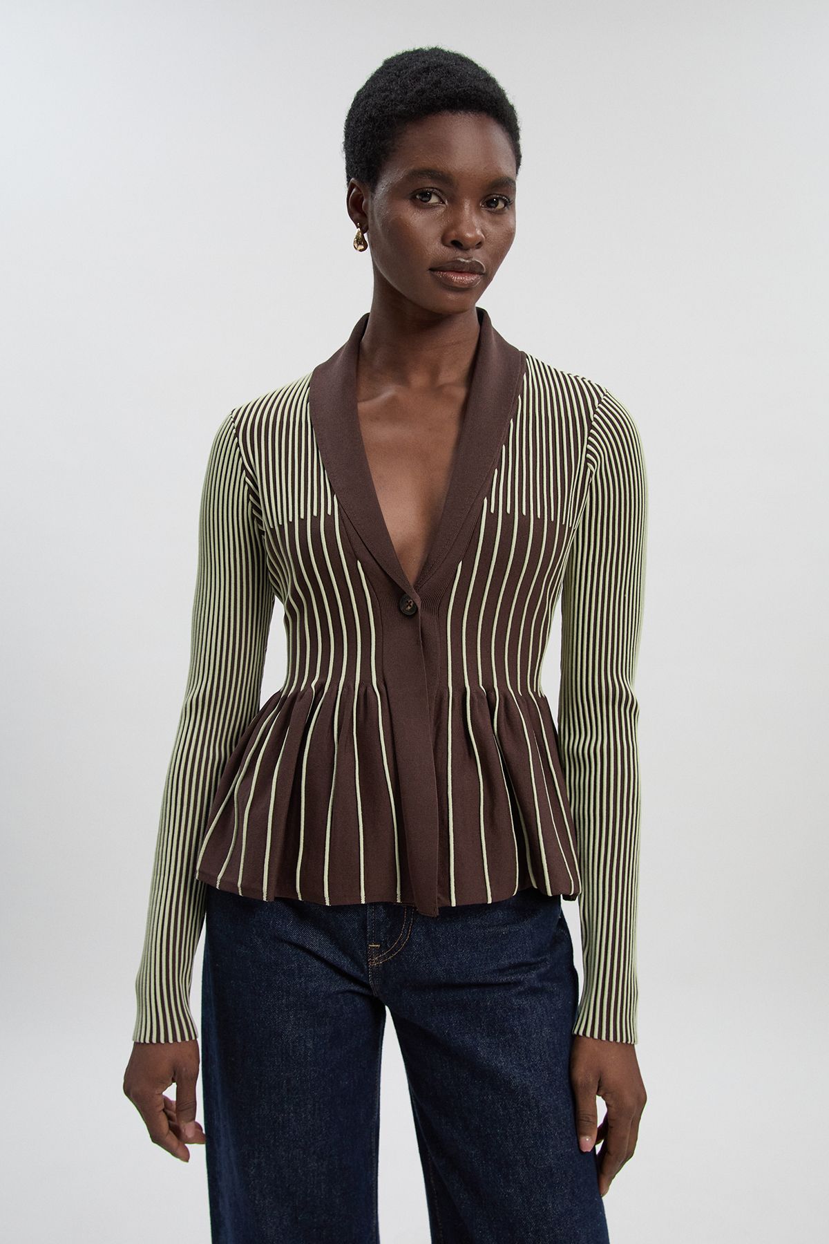 Karen Millen Womens Contrast Stripe Peplum Knitted Jacket - Green - Size X-Small