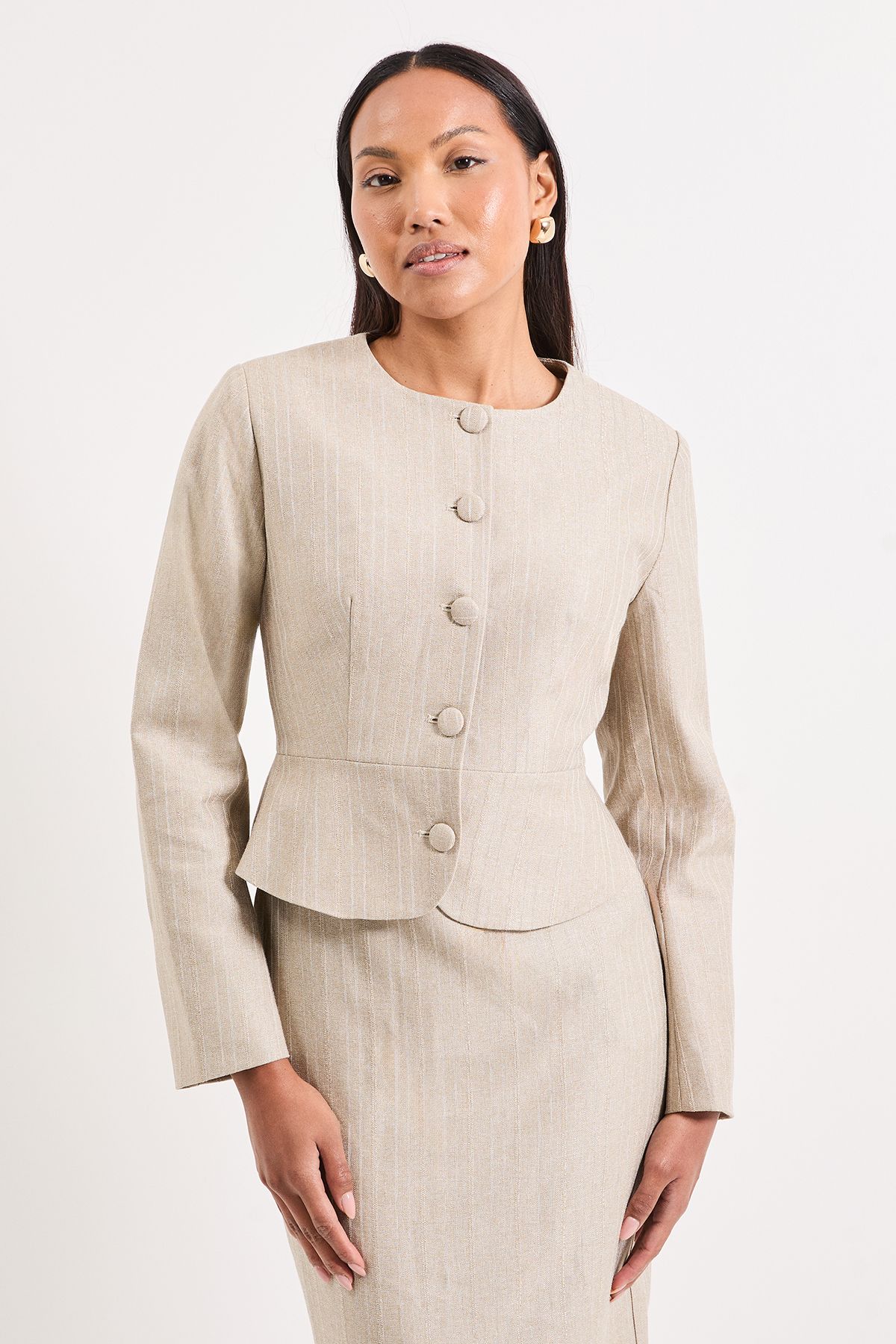 Principles Womens Beige Stripe Detail Peplum Crew Neck Jacket - Size 10 UK