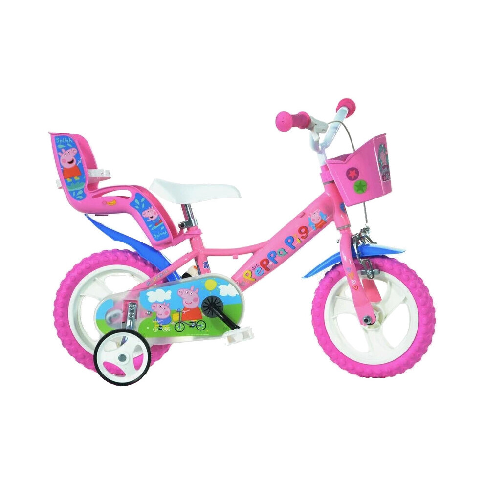 Dino Peppa Pig Pink Girls Bike with Doll Carrier - 12" Mag Wheels