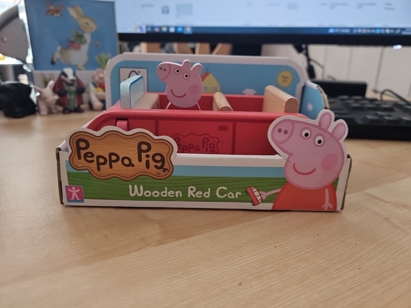 Peppa Pig Wooden Toy Red Car with Peppa Figure NEW