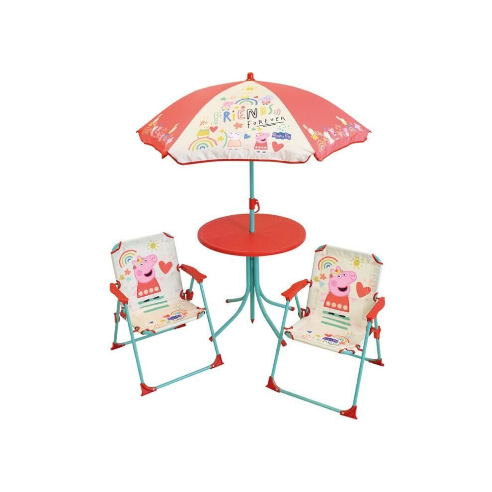 FUN HOUSE Peppa Pig Garden furniture - 1 table H.46xø46cm, 2 chairs H.53xl.38.5xD.37.5 cm and 1 parasol H.125 x ø100 cm - For