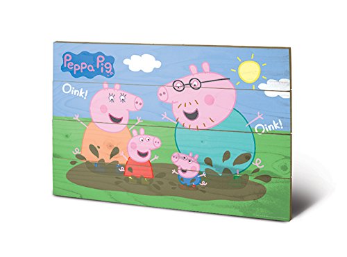 Pyramid International Peppa (Pig Family Muddy Puddle) -Wood Print 40 x 59cm, Multi-Colour, 40 x 59 x 1.3 cm